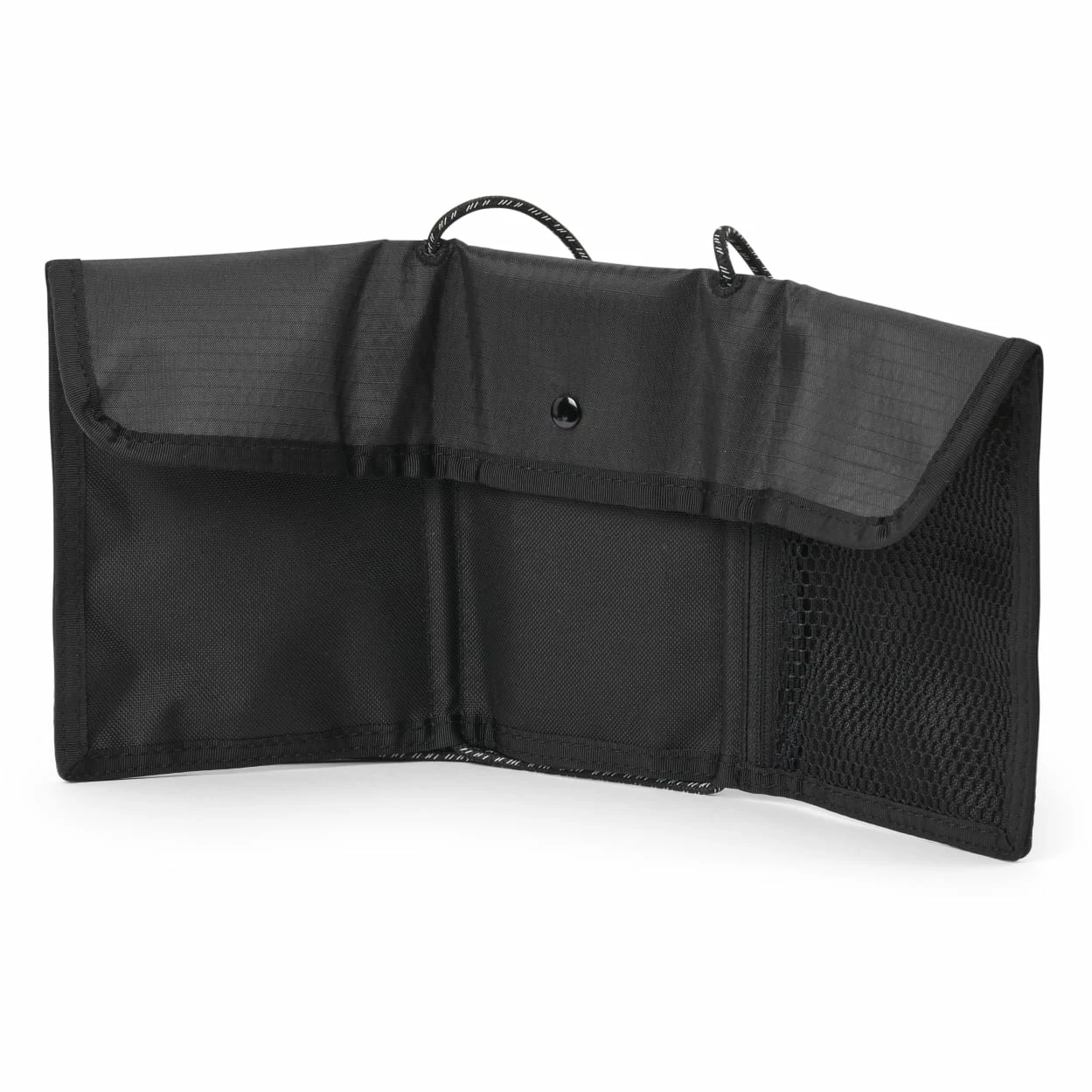 - Drie vakken om je spullen te organiseren en een extra vak met rits voor gemakkelijke toegang tot creditcards, geld of andere items.