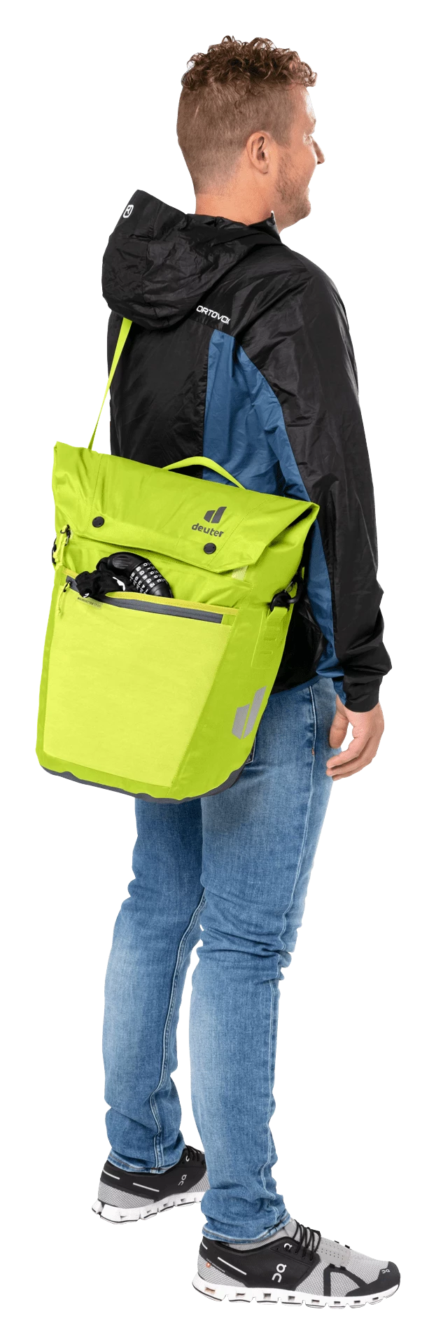 De multifunctionele tas biedt flexibiliteit dankzij de verschillende gebruiksmogelijkheden als pure opbergtas op het achterwiel of als grotere schoudertas om om je nek te hangen. En als je haast hebt, kun je gewoon de inritsbare organisatie-eenheid meenemen voor je laptop, tablet en werkdocumenten.