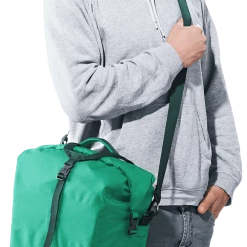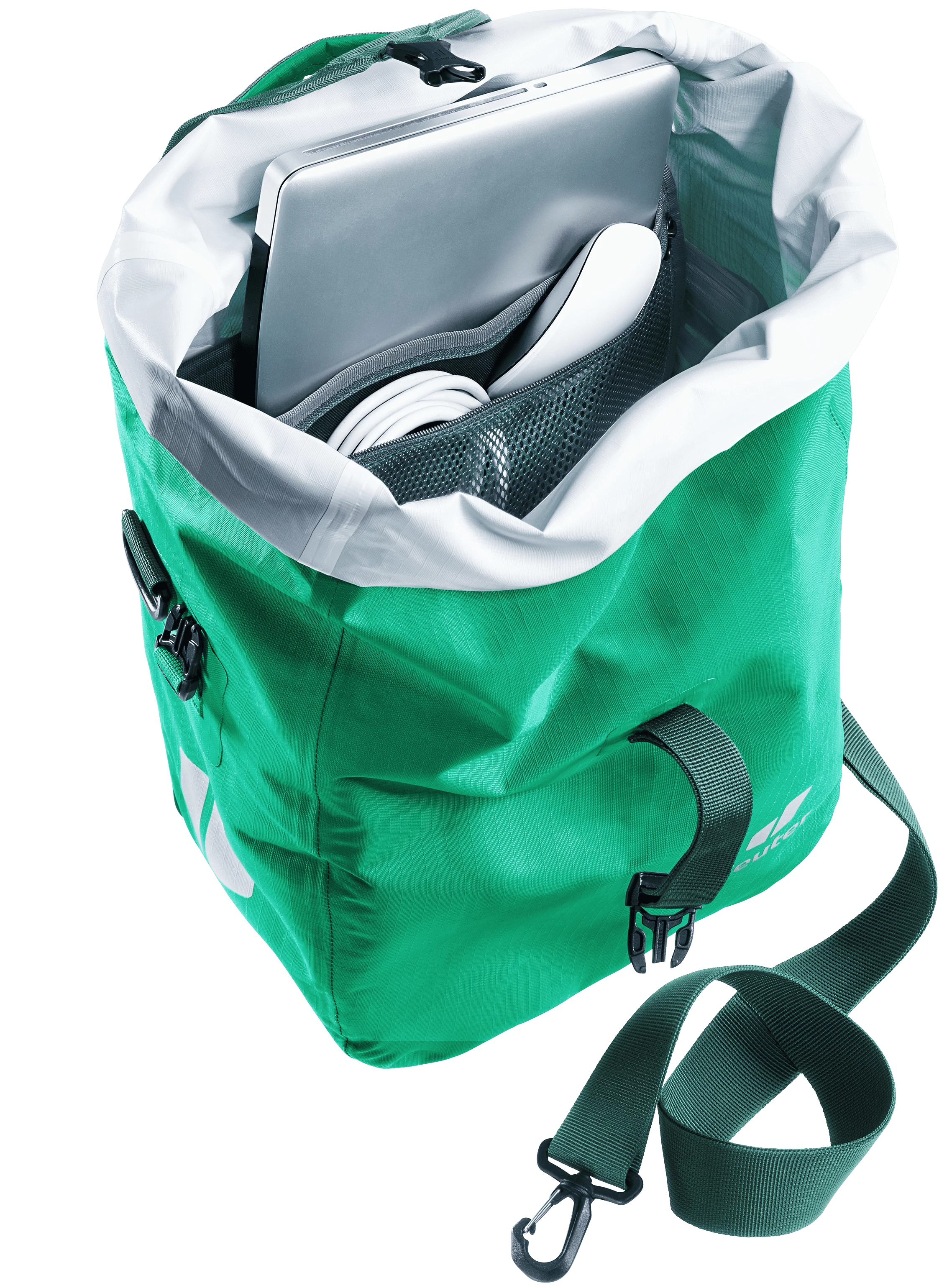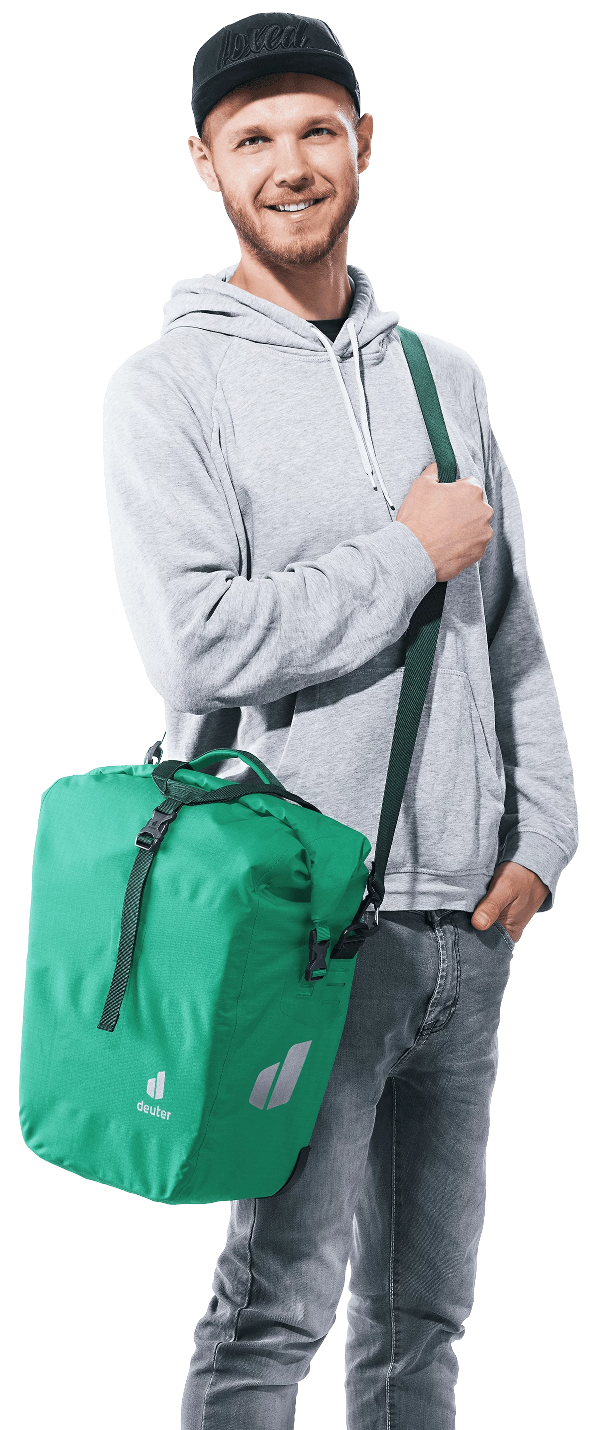 Of pure opbergtas met organizer unit op het achterwiel, grotere schoudertas om om je nek te hangen of praktische draagtas. Dankzij de afneembare schouderriem en de verstelbare draaggreepsluiting met universele houder voor slaapmat of jas zijn er nauwelijks grenzen aan het gebruik van deze tas.