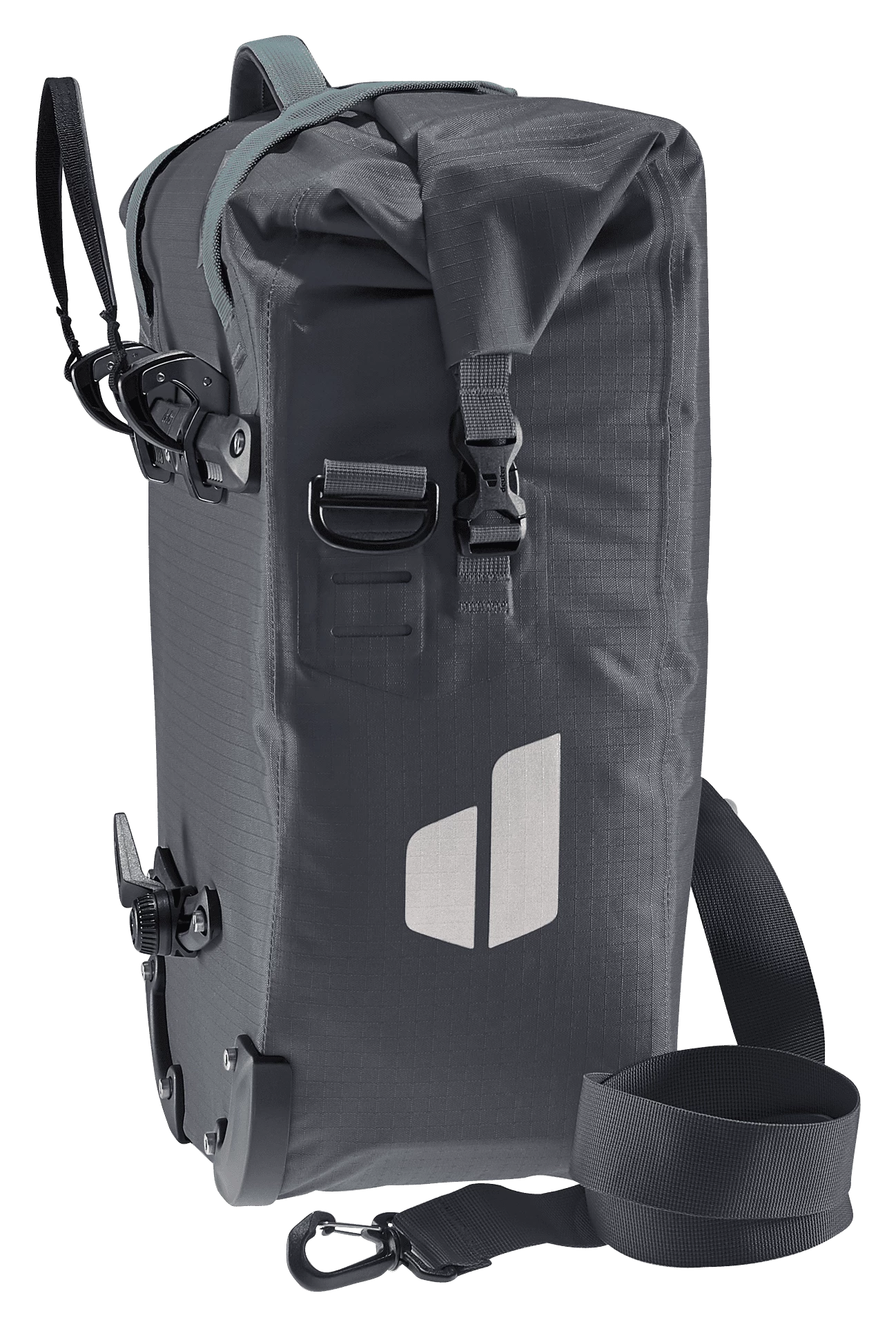 De waterdichte fietstas houdt uitrusting, bagage of vrijetijdsartikelen veilig tegen nat worden in de regen of opspattend water. Dankzij de roltopsluiting, die in het midden of aan de zijkant kan worden bevestigd, kan het volume van het lichtgewicht ruimtewonder worden uitgebreid met 5 liter extra opbergruimte.