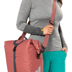 Of pure opbergtas met organizer unit op het achterwiel, grotere schoudertas om om je nek te hangen of praktische draagtas. Dankzij de afneembare schouderriem en de verstelbare draaggreepsluiting met universele houder voor slaapmat of jas zijn er nauwelijks grenzen aan het gebruik van deze tas.