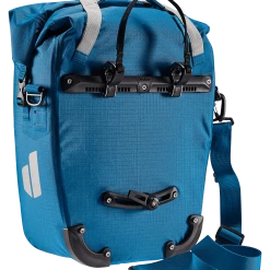 De waterdichte fietstas houdt uitrusting, bagage of vrijetijdsspullen veilig tegen nat worden in de regen of opspattend water. Dankzij de roltopsluiting, die in het midden of aan de zijkant kan worden bevestigd, kan het volume van het lichtgewicht ruimtewonder worden uitgebreid met 5 liter extra opbergruimte.