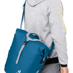 Of pure opbergtas met organizer unit op het achterwiel, grotere schoudertas om om je nek te hangen of praktische draagtas. Dankzij de afneembare schouderriem en de verstelbare draaggreepsluiting met universele houder voor slaapmat of jas zijn er nauwelijks grenzen aan het gebruik van deze tas.