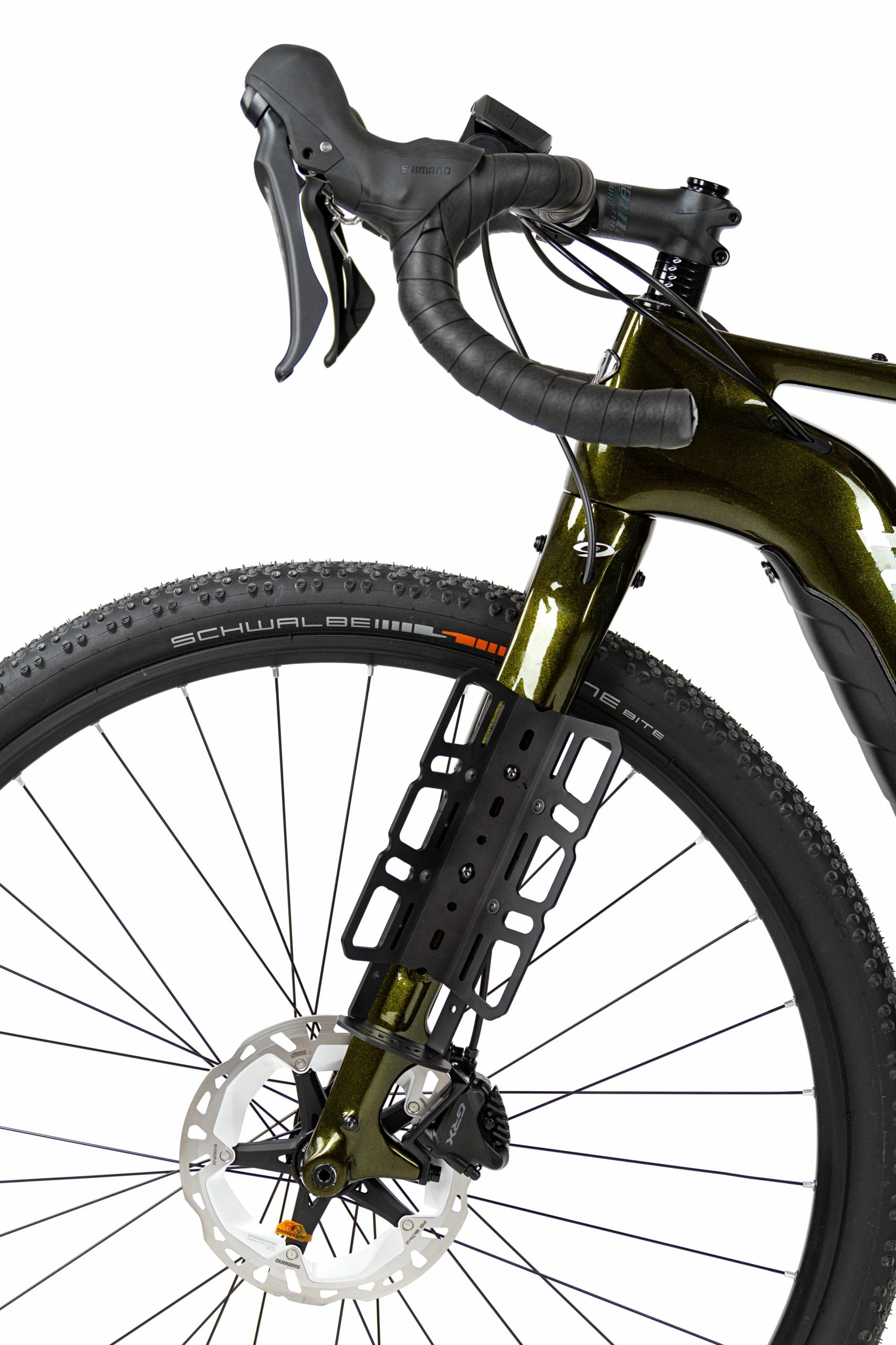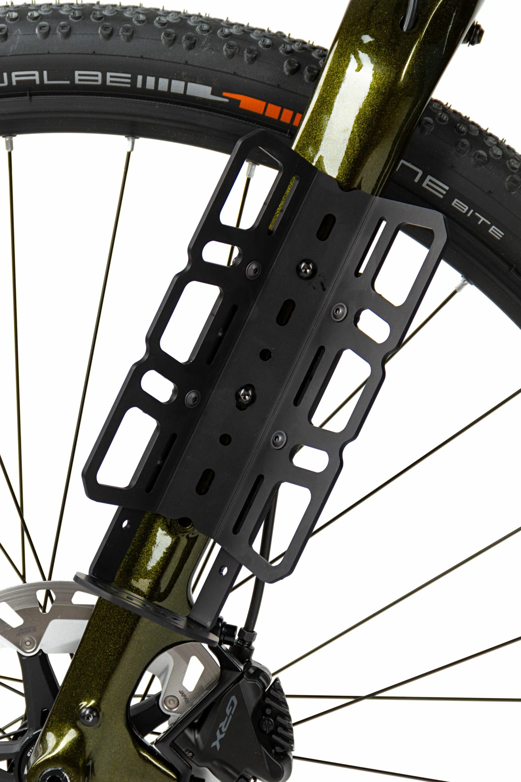 Met de nieuwe Platzangst GRVL CAGE voegen we een nieuw hoogtepunt toe aan onze bikepacking-collectie. De nieuwe GRVL CAGE biedt de perfecte bevestiging voor een breed scala aan bagage. De kooi zelf kan in verschillende posities aan de vork worden bevestigd dankzij de vele bevestigingsmogelijkheden. De innovatieve glijder, die kan worden aangepast aan individuele behoeften, biedt extra ondersteuning. De volledige GRVL CAGE is vervaardigd uit lasergesneden aluminium (ALMG3-W19) en zwart geanodiseerd. De GRVL CAGE is ontworpen en vervaardigd in Duitsland en wordt geleverd in een composteerbare verpakkingย inclusief vijf bouten en moeren om de kooi en de schuif te bevestigen.ย