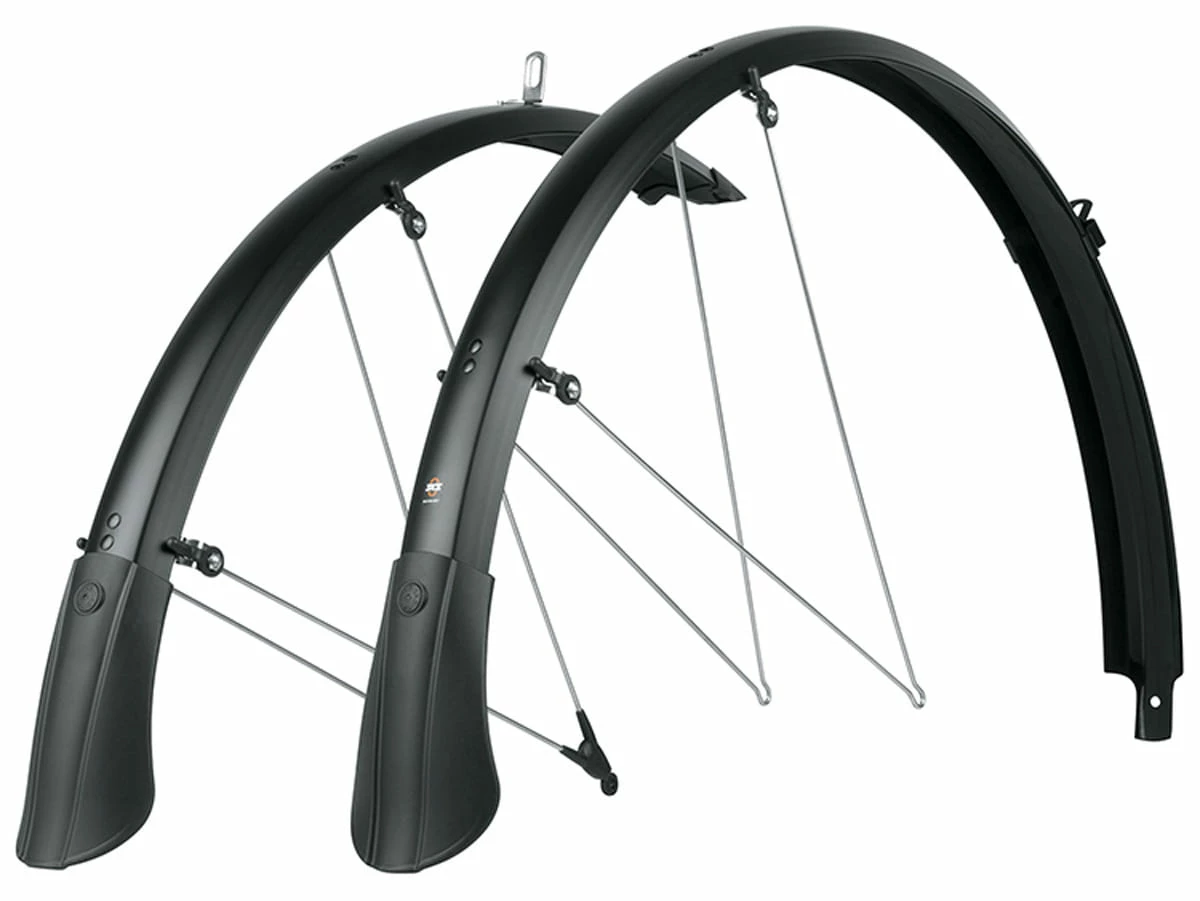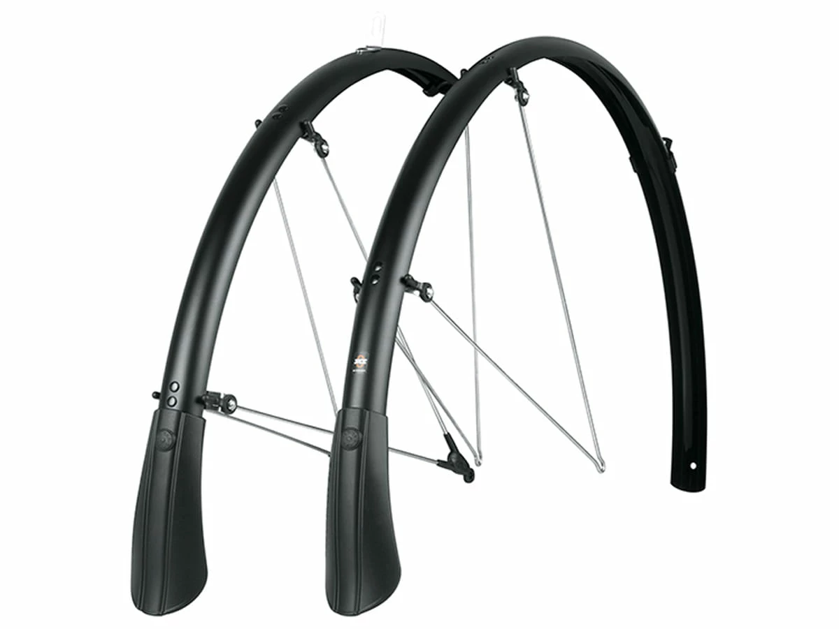 Vuil en opspattend water hebben geen schijn van kans met de BLUEMELS MATT spatborden. De klassiekers onder de SKS spatborden verfraaien de fiets ook optisch. Niet alleen het strakke design, maar ook de eenvoudige montage en de spoilers op het voor- en achterwiel onderscheiden de BLUEMELS MATT.