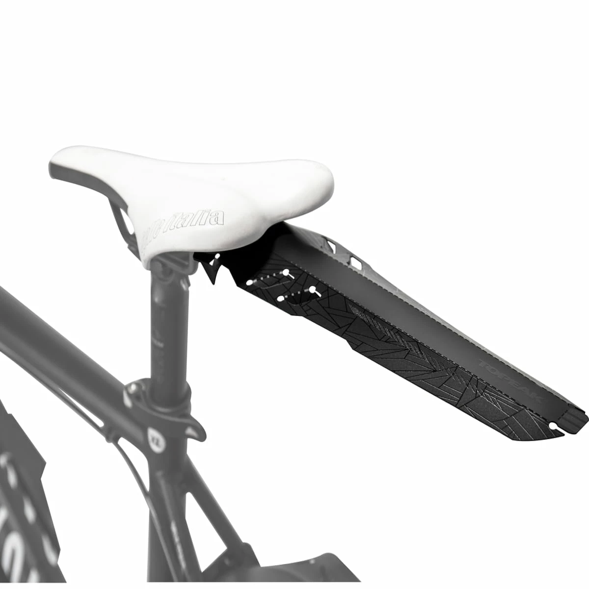 Modderbeschermer van Topeak in een modern ontwerp. Deze flap wordt stevig onder het zadel bevestigd met een speciaal ontwikkeld bevestigingssysteem om bescherming te bieden tegen vuil dat van het achterwiel wordt opgeworpen.